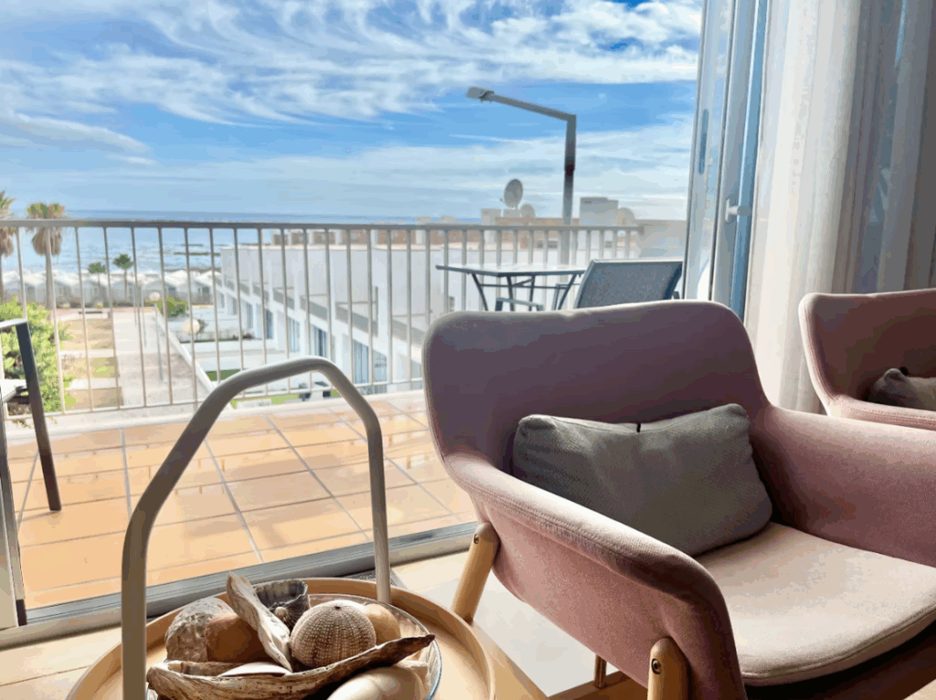 Appartement Vista Mar – Voor 4 personen. Ook dit appartement heeft twee slaapkamers, twee badkamers, een woonkamer met balkon en een volledig uitgeruste keuken. Het dakterras biedt 360° uitzicht, jacuzzi, buitenkeuken en BBQ.