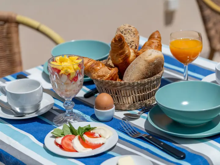 ’s Ochtends kun je aanschuiven in de ontbijtruimte ‘De Parel’, waar vers fruit, broodjes en andere ontbijtproducten worden geserveerd. Voor lunch of diner ga je naar een van de lokale restaurants in de omgeving — de accommodatie zelf biedt geen restaurant, wat bijdraagt aan de rustige sfeer.